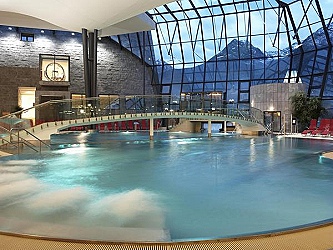 Die einen schwitzen erschöpft bei der Hüttenparty am Berg, die anderen schwitzen entspannt in der Heustadlsauna der Therme. Die Sauna-Welt "Gletscherglühen" lässt durch verschiedenste Saunakammern, Dampf-Dom, Solegrotte bis hin zu Soledampfbad, Kräuterbad, Eisbecken und Panoramasprudel schmerzende Muskeln und erschöpfte Beine vergessen. Es werden alle Facetten der Wärme-Entspannung geboten und der Körper damit so richtig mit neuer Energie aufgetankt.